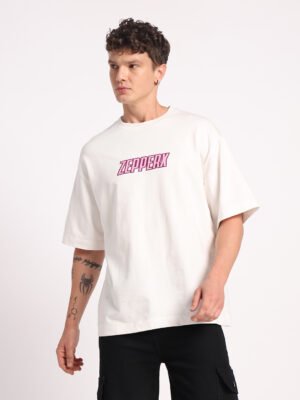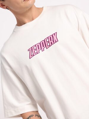 ZEPPERX Oversized Off-White Tee with Pink Logo